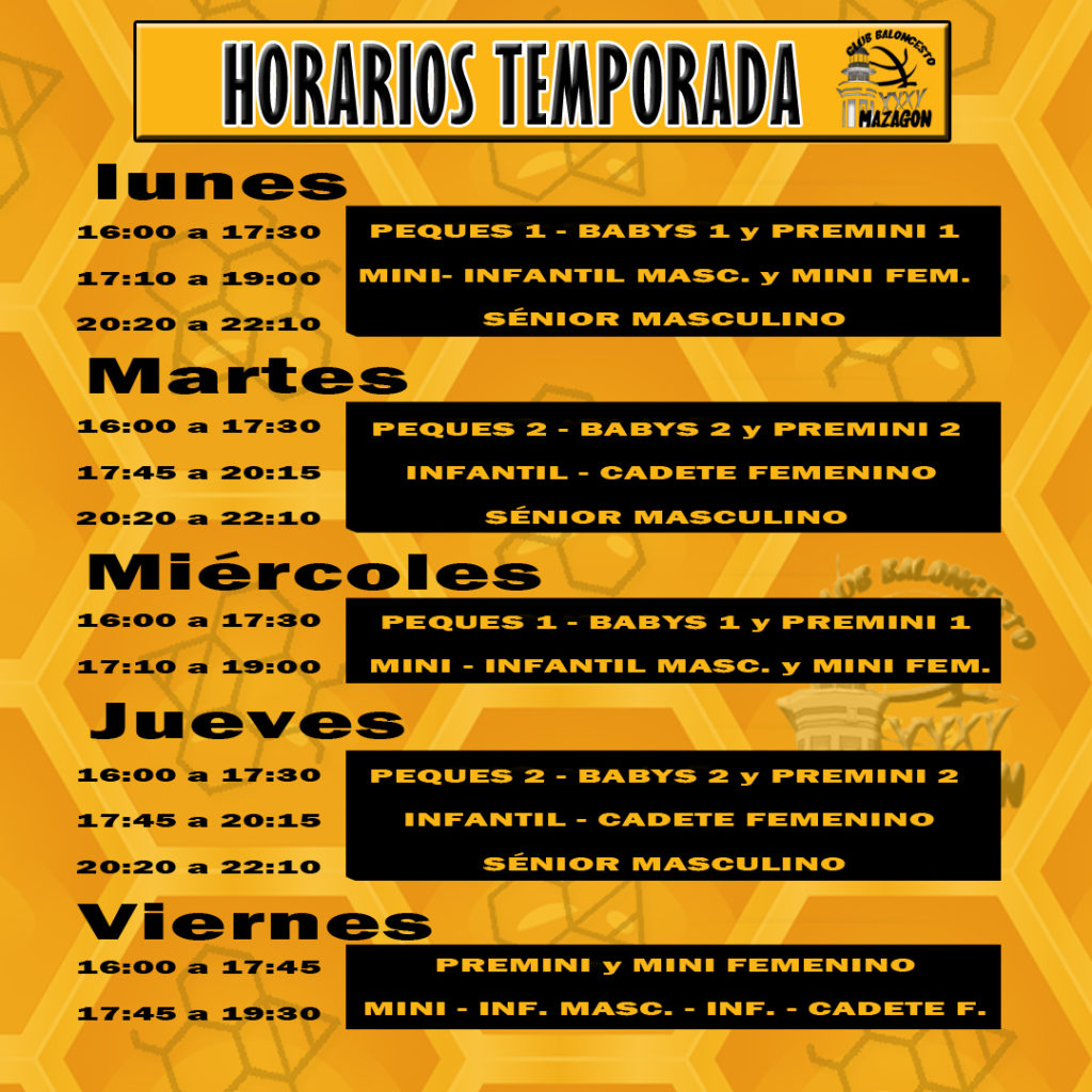 Horarios de la temporada 2025-2026 12 septiembre, 2025Anuncios , Últimas noticias Presentamos los horarios oficiales de los entrenamientos para esta temporada 2025-2026.