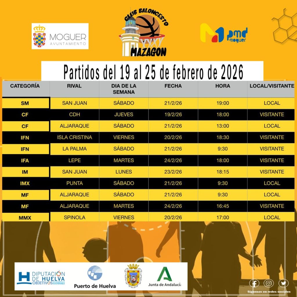 Partidos de la semana (19 al 25 de febrero 2026) 19 febrero, 2026Anuncios , Prensa , Últimas noticias El equipo senior masculino jugará su Jornada 11 en casa contra San Juan el próximo sábado 21 de febrero a las 19.00h.