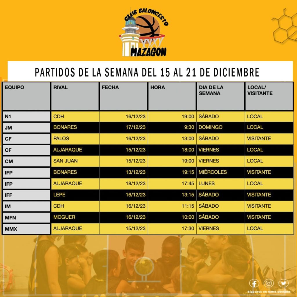 Partidos de la semana 14 diciembre, 2023Anuncios , Prensa , Últimas noticias El sábado 16 de diciebre juega el Nacional Femenino en casa contra Ciudad de Huelva. ¡Esperamos todo vuestro apoyo!